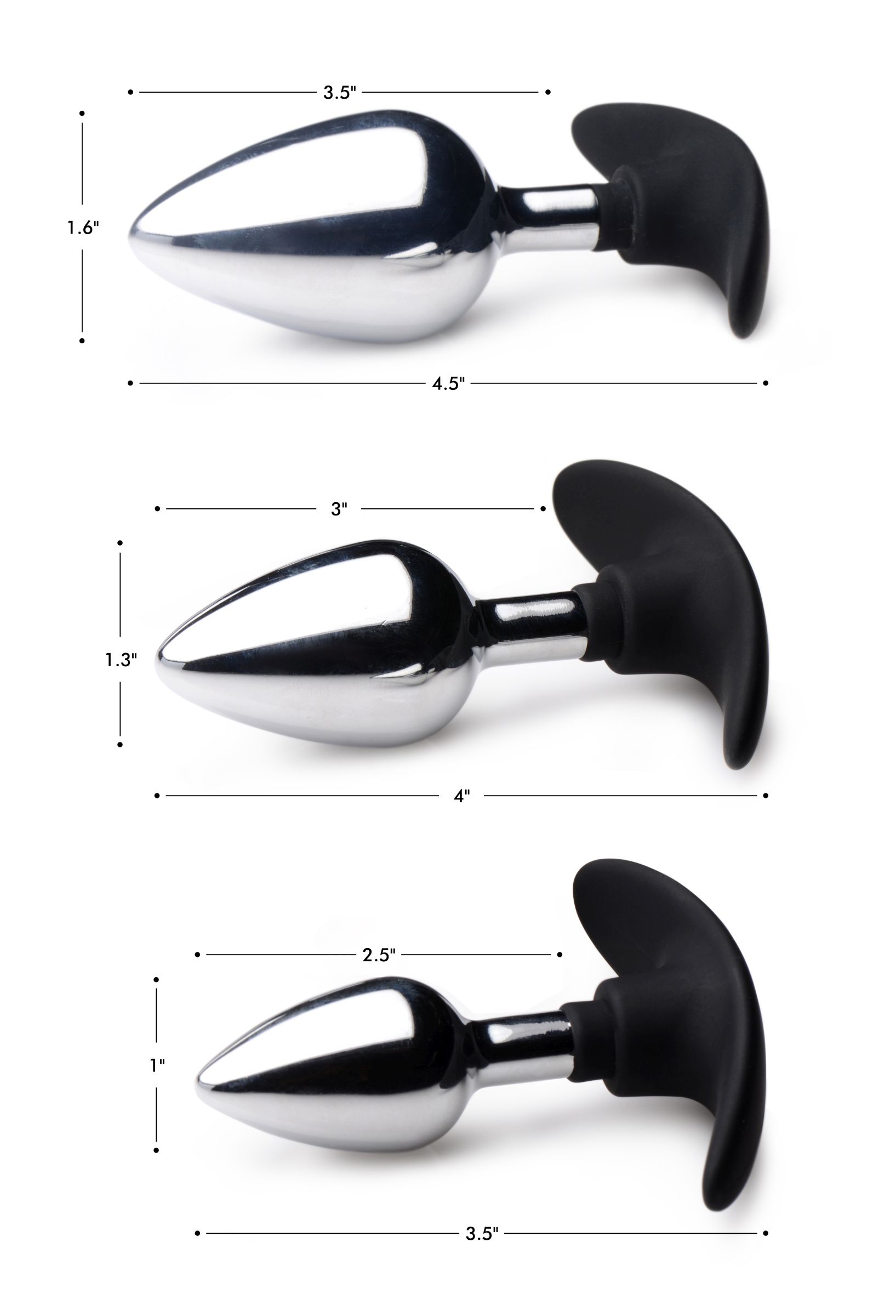 Measurements: Overall length 4.5 inches, insertable length 3.5 inches, widest diameter 1.6 inches